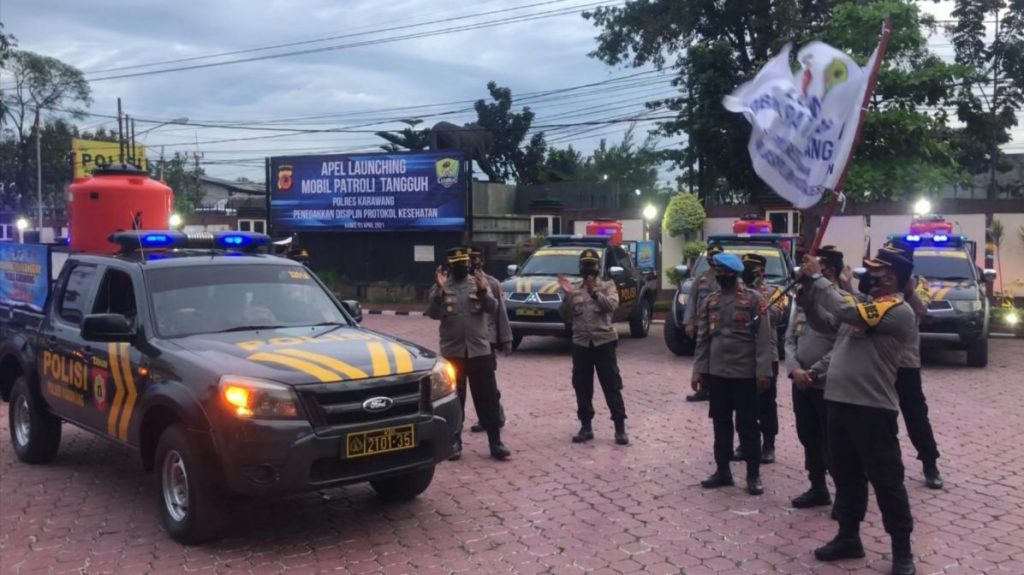 Karawang – Dalam rangka Apel dan Launching Mobil Patroli Tangguh Polres Karawang, 1 April 2021 di lapang Apel Mako Polres Karawang.