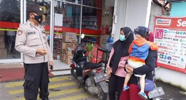 Menghimbau karyawan Alfamaret Cibuaya Kecamatan Cibuaya Kab Karawang dan warga yang tengah berbelanja.