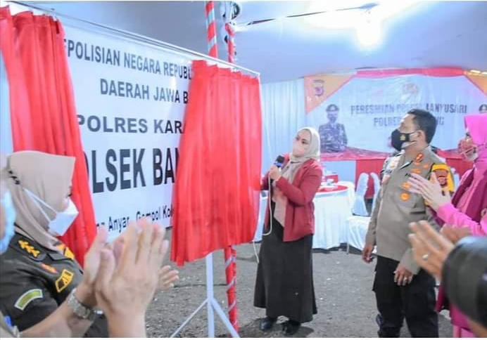 Karawang – Bupati Karawang, dr. Hj. Cellica Nurrachadiana dan Wakil Bupati Karawang, H. Aep Syaepuloh SE menyaksikan peresmian Mapolsek Banyusari di Desa Gempol Kolot, Kecamatan Banyusari, Selasa 20 April 2021.