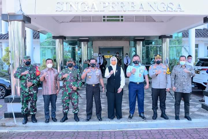 koordinator bidang politik hukum dan keamanan Republik Indonesia di Ruang Rapat Sekda, Kamis (22/4/2021) pagi. Hadir Marsekal Muda TNI Achmad Sajili (Staf Ahli Menko Polhukam Bid. Ketahanan Nasional) dan Inspektur Jenderal Polisi Dr. Agung Makbul, Drs., S.H., M,H. (Staf Ahli Menko Polhukam Bid. Ideologi dan Konstitusi).