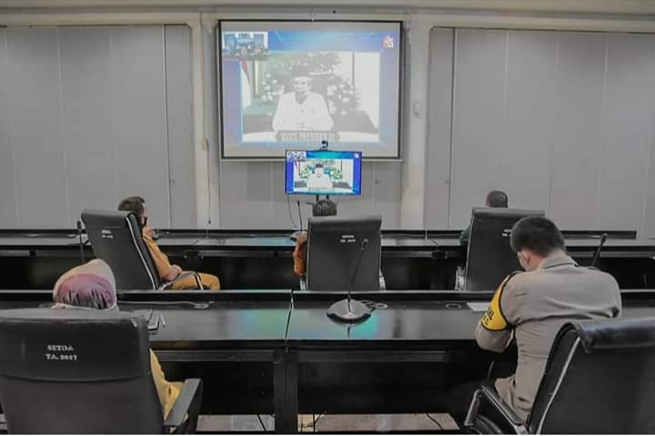 Karawang – Pemerintah Kabupaten (Pemkab) Karawang yang diwakili Wakil Bupati H. Aep Syaepuloh dan Sekda H. Acep Jamhuri mengikuti rapat internal dan terbatas puncak peringatan Hari Otonomi Daerah ke-25 secara virtual di Aula Lantai 3 Gedung Singaperbangsa Kantor Bupati Karawang, Senin (26/4/2021) siang.