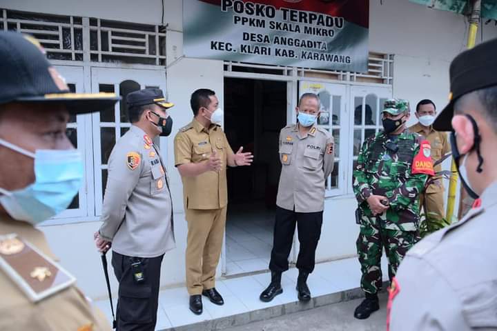 Karawang – Wakil Bupati (Wabup) Karawang, H. Aep Syaepuloh melakukan pendampingan Tim Ahli BNPB untuk meninjau Posko Terpadu PPKM Mikro di Desa Anggadita, Kecamatan Klari, Senin (3/5/2021) pagi.