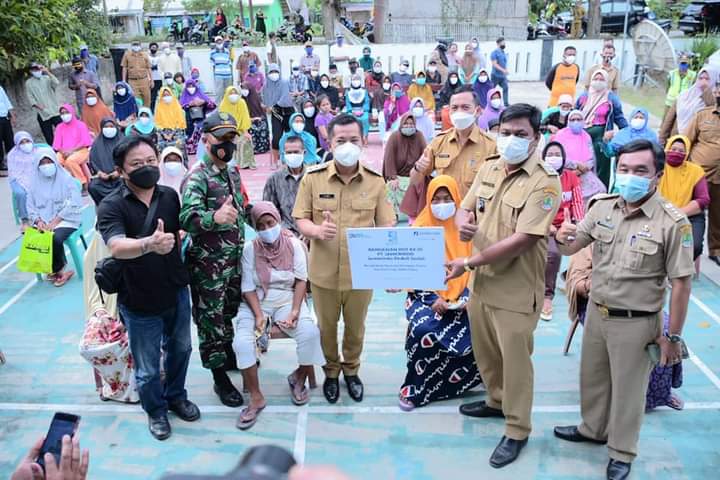 Karawang – Wakil Bupati (Wabup) Karawang, H. Aep Syaepuloh menyerahkan bantuan paket sembako dan santunan yatim piatu kepada masyarakat kurang mampu di Desa Karya Makmur, Kecamatan Batujaya Kabupaten Karawang, Senin (3/5/2021) sore di Kantor Kepala Desa Karya Makmur.