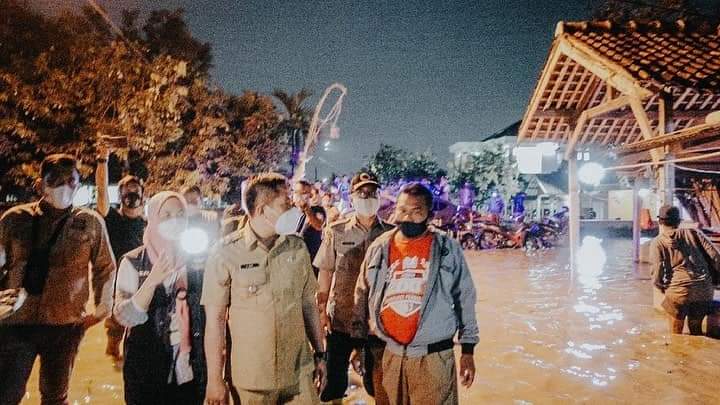 Karawang – Wakil Bupati Karawang H. Aep Syaepuloh meninjau lokasi banjir Desa Karangligar, Kecamatan Telukjambe Barat, Karawang, Selasa, (25/5). Di lokasi, wakil Bupati memberikan bantuan untuk warga terdampak banjir.