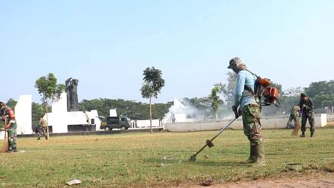 Karawang – Dalam rangka memperingati Hari Lahir Pancasila tahun 2021, petugas gabungan TNI, Polri, Satpol PP, pejabat Kecamatan dan masyarakat gelar kegiatan bersih-bersih sampah di Tugu Proklamasi, Kecamatan Rengasdengklok ,Kabupaten Karawang, Selasa(1/6) pagi.