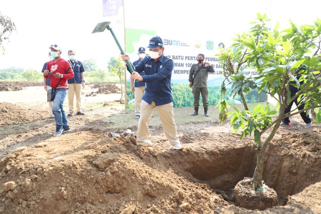 Selain menanam ribuan pohon, Pupuk Kujang memulai pembuatan fasilitas rekreasi dan edukasi. Hari ini, Dirut Pupuk Kujang memulai peletakan batu pertama pembuatan jogging track, taman, hidram, bio reaktor, hingga pembangkit listrik hybrid.