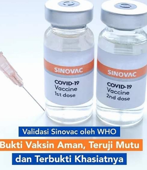 Baru-baru ini, Organisasi Kesehatan Dunia (WHO) merekomendasikan vaksin COVID-19 produksi Sinovac (CoronaVac) dalam daftar penggunaan darurat atau Emergency Use Listing (EUL).