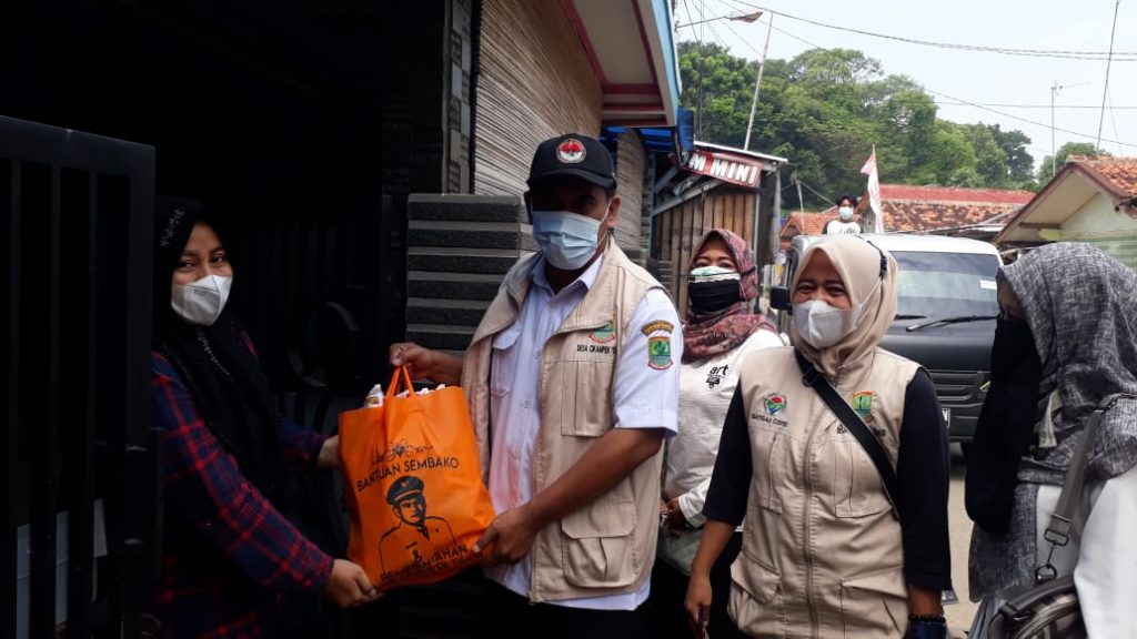 Karawang – Pemerintah Desa Cikampek Timur Kecamatan Cikampek Kabupaten Karawang bersama Satgas Covid-19 tingkat desa salurkan bantuan logistik berupa sembako kepada warga yang positif virus Corona.