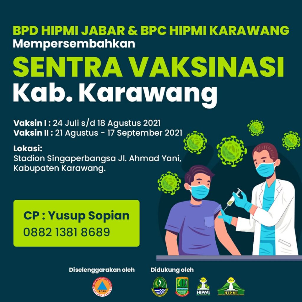 Karawang – Menyikapi perkembangan kasus covid-19 tren nya terus meningkat dari hari ke hari khususnya di Kabupaten Karawang. Ketua Formateur BPC HIPMI Karawang, Komarudin mengajak seluruh masyarakat untuk turut serta mensukseskan vaksinasi Covid-19 yang akan digelar di lapangan Stadion Singaperbangsa Kabupaten Karawang pada tanggal 24 juli 2021.
