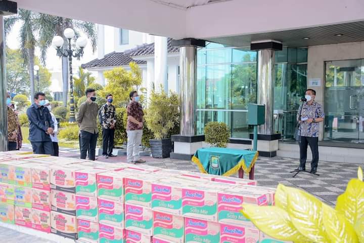Karawang – Wakil Bupati Karawang, H. Aep Syaepuloh, SE., kembali menerima bantuan alat kesehatan dan sembako dari sejumlah perusahaan untuk percepatan penanganan covid 19 di Karawang, Kamis (22/7).