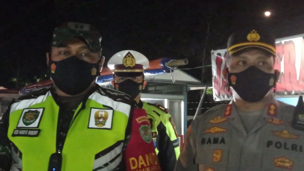 Para petugas gabungan menyisir Jalan By Pass Karawang dan Lapangan Karangpawitan untuk membagikan paket sembako kepada pedagang kaki lima, pengamen dan tukang ojeg pangkalan di sekitar lokasi, pada (27/7/2021) malam.