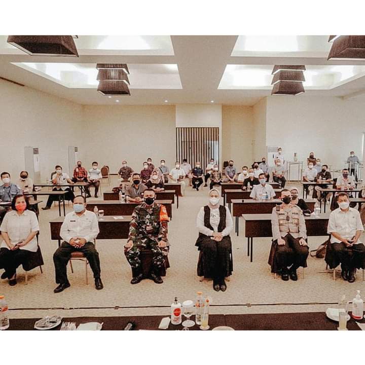 Karawang – Bupati Karawang, dr. Hj. Cellica Nurrachadiana bersama Dandim 0604 Karawang dan Kepala Dinas Perindustrian dan Perdagangan Kabupaten Karawang, mensosialisasikan Pemberlakukan Pembatasan Kegiatan Masyarakat (PPKM) level-3 kepada para pengelola usaha kawasan luar zona industri, Rabu 4 Agustus 2021, di Hotel Akhsaya.