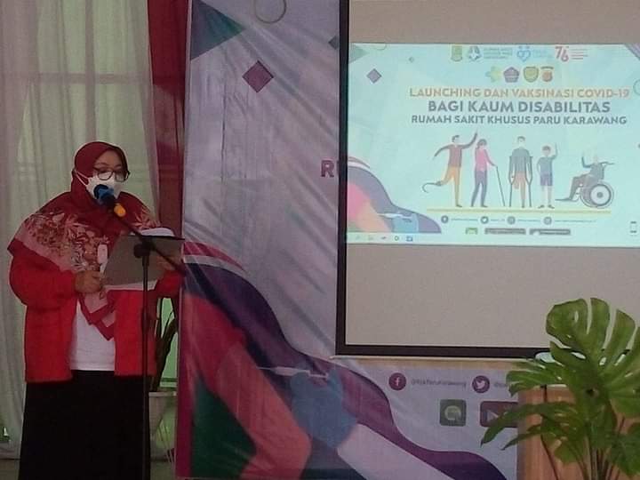 Karawang – Pemerintah Kabupaten Karawang melaunching vaksinasi bagi penyandang disabilitas. Launching di lakukan oleh Kepala Dinas Kesehatan (Dinkes) dr. Endang Suryadi, Mars mewakili Bupati dr. Hj. Cellica Nurrachadiana, di Rumah Sakit Paru Karawang, Rabu (18/8/2021).
