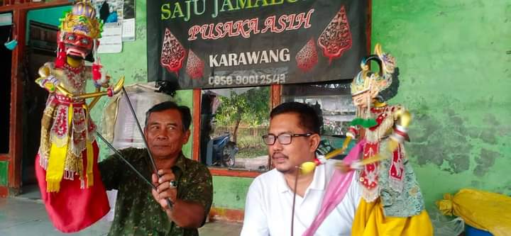 Karawang – Ketua Pepadi Kabupaten Karawang, Waya Karmila berkunjung ke rumah dalang wayang golek Dalang Saju Jamaluddin.