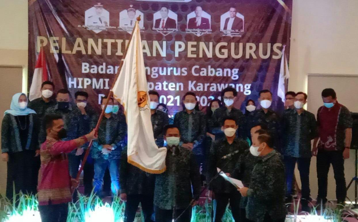 Kibarkan Pataka, Komarudin Resmi Dilantik Jadi Ketua BPC HIPMI Karawang
