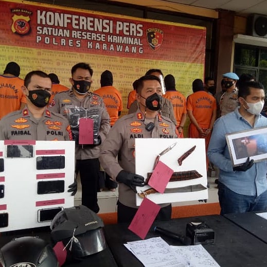 Kepala Kepolisian Resort (Polres) Karawang, AKBP Aldi Subartono, saat konferensi pers di Mapolres Karawang mengatakan, penyidik Polres Karawang berhasil menangkap enam orang pelaku yang diduga membunuh korban.