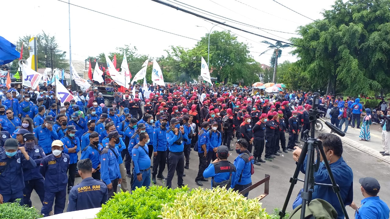 Teman-teman semua, kawan-kawan massa aksi yang sungguh luar biasa sampai dengan saat ini masih bertahan di depan kantor bupati untuk sama-sama mengawal perundingan Upah Minimum Kabupaten Karawang tahun 2022 dan kita sudah mulai dari kemarin sampai tadi tengah malam, dilanjutkan lagi hari ini,” kata pria yang juga menjabat sebagai Ketua FSP TSK SPSI Kabupaten Karawang penuh bangga.