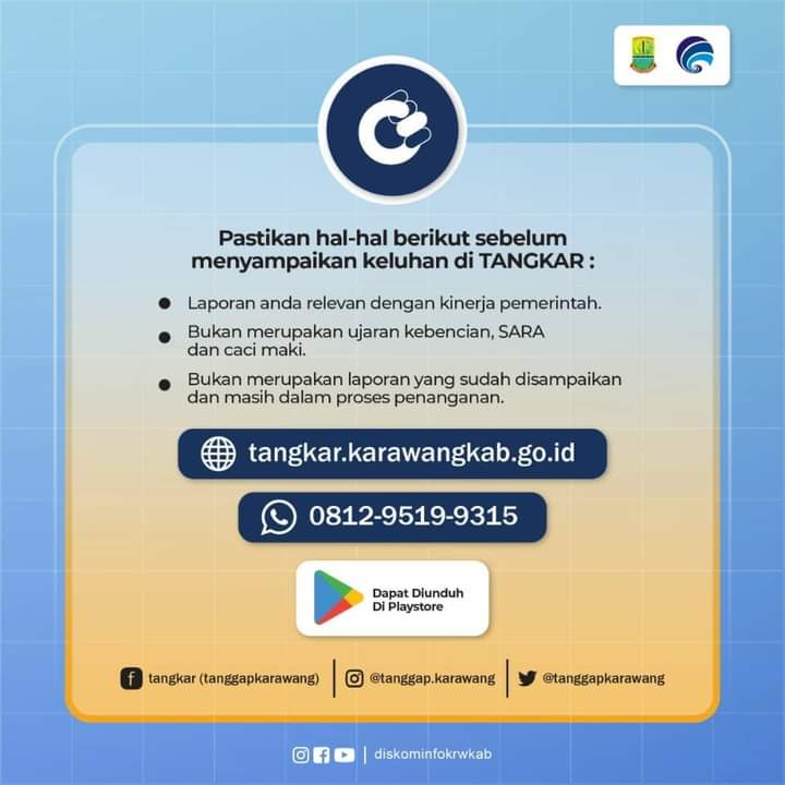 Kepala Dinas Komunikasi dan Informatika Kabupaten Karawang, Wahidin mengatakan, layanan aduan Tangkar atau Tanggap Karawang kini melayani via aplikasi WhatsApp.