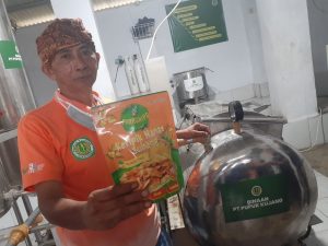 “Atas bantuan dari PT Pupuk Kujang, kita bisa memproduksi 6 kilo kripik nanas setiap harinya. Dari 120 kilo bahan mentah nanas, dipotong menjadi 6 kilo kripik siap edar,” katanya.