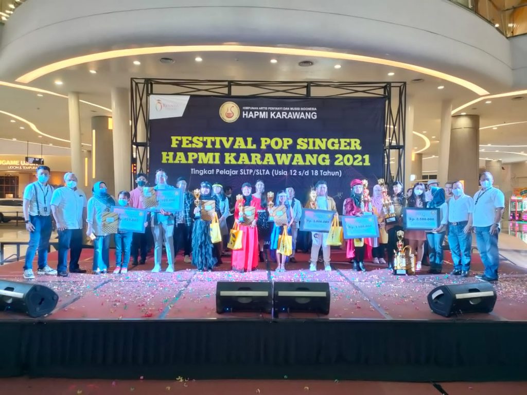 Karawang – Penghujung Tahun 2021, Himpunan Artis Penyanyi dan Musisi Indonesia (HAPMI) Kabupaten Karawang menggelar Festival Pop Singer Antar Pelajar SLTP dan SLTA memperebutkan piala bergilir Bupati Karawang. Festival ini merupakan agenda tahunan dan ini kali ke 2 diadakan dengan tujuan sebagai wadah pengembangan talenta para pelajar untuk mencari bakat remaja dalam seni vokal. Untuk tahun ini pesertanya tidak saja diikuti oleh peserta dari karawang namun juga diikuti oleh peserta dari Pangandaran, Bandung, Bekasi dan Jakarta.