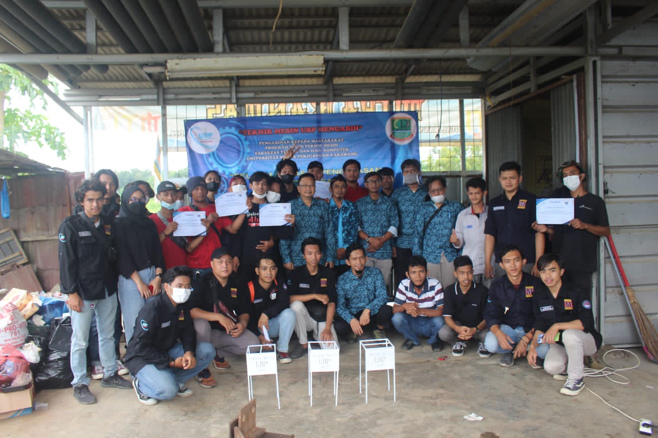 Karawang – Para dosen dan perwakilan mahasiswa Program Studi Teknik Mesin (Prodi TM) Fakultas Teknik dan Ilmu Komputer (FTIK) Universitas Buana Perjuangan (UBP) Karawang pada sabtu 15 Januari 2021 memberikan Pelatihan Dasar Pengelasan bagi masyarakat pemuda di Desa Tegal sawah Kecamatan Karawang Timur Kabupaten Karawang.