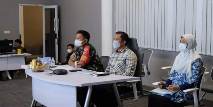 Rapat virtual dihadiri Wakil Bupati Karawang, H. Aep Syaepuloh SE, Dandim 0604 Karawang, Letkol Kav Makhdum Habiburrahman dan Kepala Bidang P2P Dinkes Karawang, dr. Yayuk Sri Rahayu di Command Center Karawang, Minggu 6 Februari 2022.