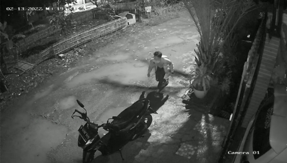 Hal itu terlihat dari CCTV salah seorang pria dengan posisi jongkok menghampiri motor yang terparkir, kemudian berhasil memboyong motor tersebut.