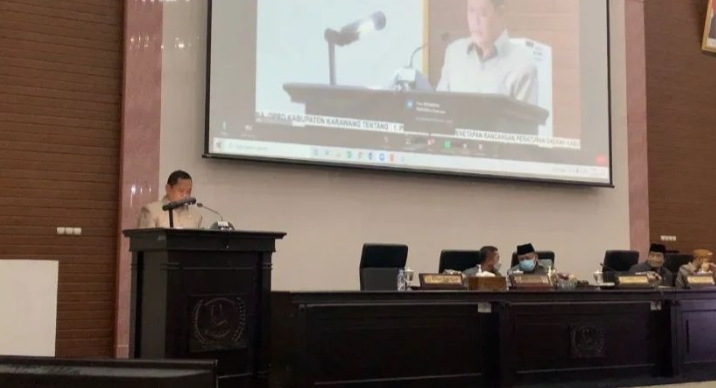 Karawang – Dewan Perwakilan Rakyat Daerah (DPRD) Kabupaten Karawang melaksanakan rapat paripurna, pada Rabu (16/2/2022) dengan agenda pembahasan persetujuan dan penetapan rancangan Peraturan Daerah (Perda) Kabupaten Karawang tentang pengembangan ekonomi kreatif. Lalu pengumuman masa reses I Anggota DPRD Karawang Tahun 2022.