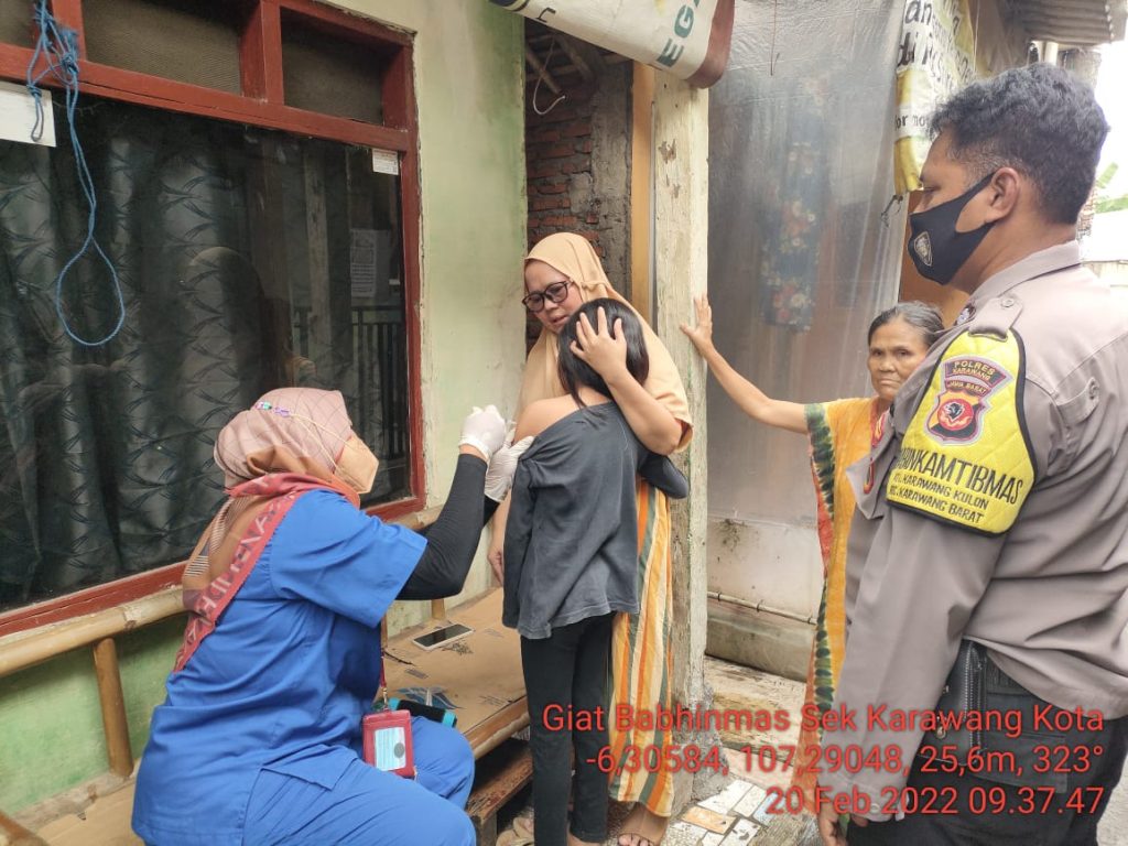 Karawang – Kepolisian Resor Karawang terus menggelar vaksinasi Covid-19 secara Mobile jemput bola atau door to door kepada warga, Minggu (20/02/2022). hari ini Vaksinator dari Tim Gerai Vaksin Presisi Polres Karawang menyasar warga yang belum mendapatkan vaksinasi di Kampung Anjun Kanoman Kelurahan Karawang Kulon Kabupaten Karawang.
