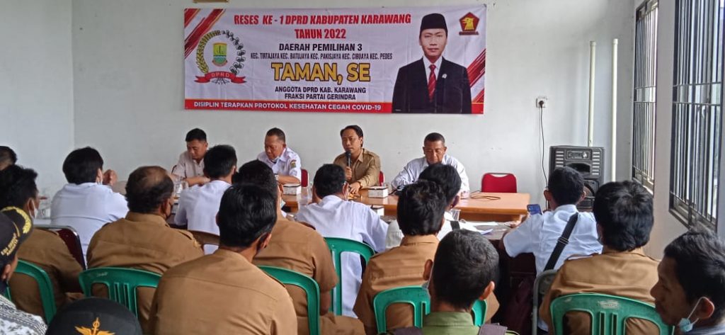 KARAWANG-Sejumlah petani di daerah pemilihan (dapil) tiga, khususnya di Desa Tambak Sari dan Tambak Sumur membutuhkan pembangunan pintu air di saluran irigasi skunder yang mengairi sawah mereka. Hal itu terungkap dalam kegiatan reses Anggota Fraksi Gerindra DPRD Karawang, Taman SE.