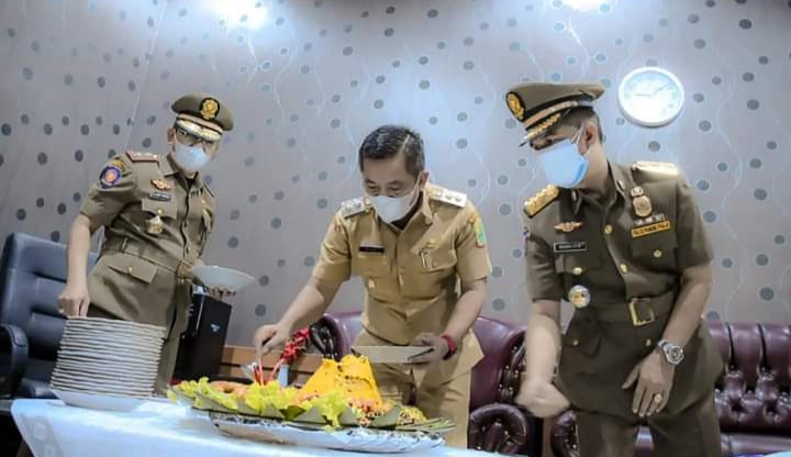 Peringatan HUT Satpol PP dan Sat Linmas berlangsung secara sederhana dan dengan menerapkan protokol kesehatan yang ketat.