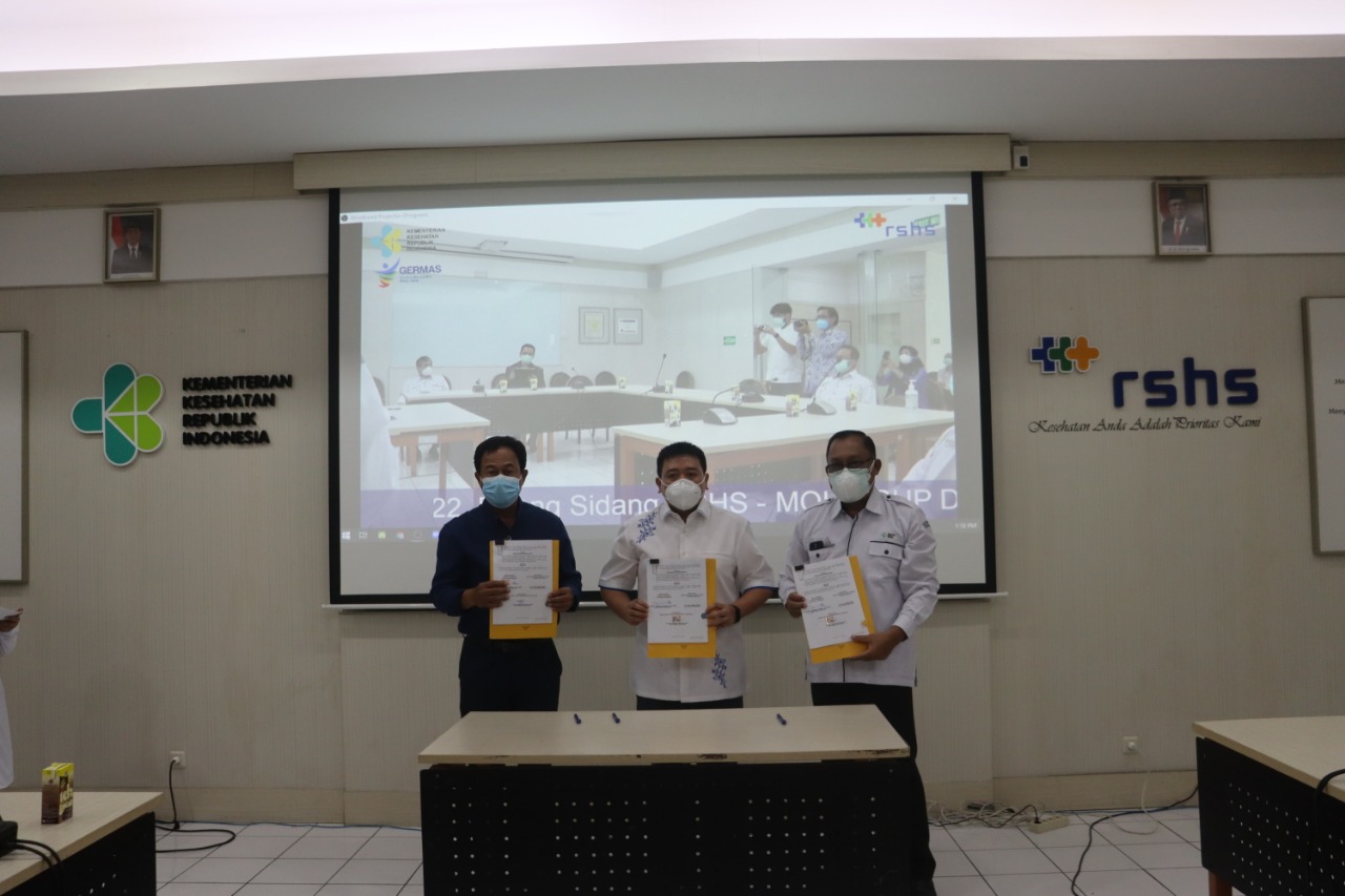 Penandatangan perjanjian kerjasama dihadiri oleh dr. Azhar, SKM, MARS selaku Sesditjen Yankes Kementrian Kesehatan RI/ Plt. Direktur Utama RSUP Hasan Sadikin, Prof. Dr. Yudi Mulyana Hidayat, dr, Sp.OG (K) selaku Dekan FK Unpad dan dr. Fitra Hergyana, MH.Kes, Sp.DV selaku Plt Direktur RSUD Karawang.
