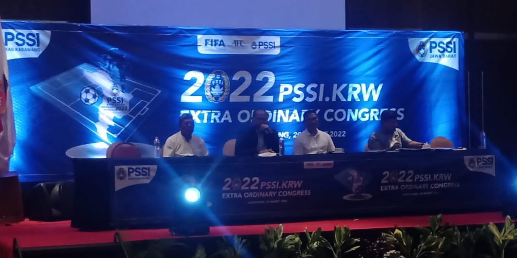 Aang mendapat suara mayoritas dari para voter dalam kongres luar biasa PSSI Askab Karawang di Hotel Mercure Karawang, Minggu 20 Maret 2022.