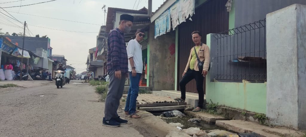 KARAWANG-Anggota DPRD Kabupaten Karawang dari Fraksi Golkar, Akmaludin meninjau kondisi drainase di RT02 RW07 Dusun Mekarsari, Desa Cikampek Utara, Kecamatan Kotabaru atau yang terkenel sebagai Kampung Boneka di Kabupaten Karawang.