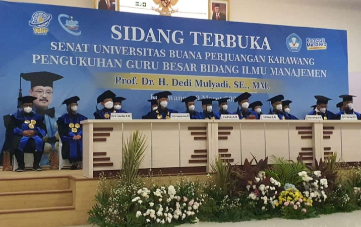 Karawang – Gelar Profesor diraih Rektor Universitas Buana Perjuangan (UBP), Dr. H. Dedi Mulyadi, SE., MM. Yang bersangkutan dikukuhkan menjadi guru besar bidang ilmu manajemen, pada Sidang Terbuka di Aula UBP Karawang, Rabu (30/3/2022).
