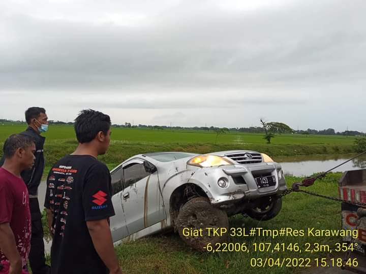 Menurut keterangan mobil tersebut di kemudikan oleh Suryadi (46), warga Griya Pesona Asri, RT. 066 RW. 018, Desa Duren, Kecamatan Kelari, Karawang.