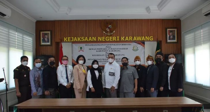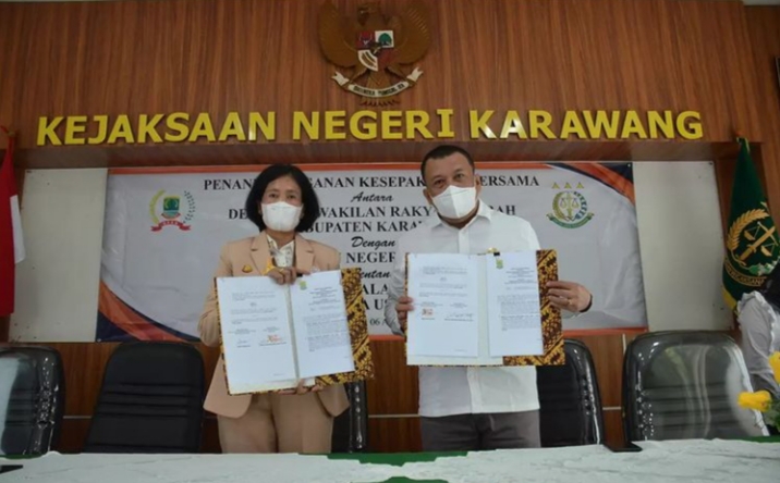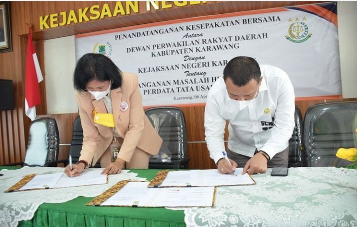 Karawang – Dewan Perwakilan Rakyat Daerah (DPRD) Kabupaten Karawang bekerjasama dengan Kejaksaan Negeri Karawang melaksanakan penandatanganan kesepakatan bersama penanganan masalah hukum perdata dan tata usaha negara, pada Rabu (6/4/2022) di Aula Kejaksaan.