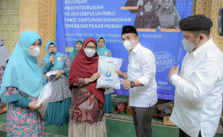 Karawang – Pemerintah Kabupaten Karawang bersama Badan Koordinasi Majelis Ta’lim Masjid Dewan Masjid Indonesia (BKMM-DMI) menyalurkan 10.000 paket bantuan Ramadan kepada para kaum dhuafa dan jompo, Rabu (13/4/2022) pagi di Masjid Al-Jihad Karawang. Tidak hanya itu, bantuan ini juga menyasar pada lansia, para guru ngaji dan anak yatim.