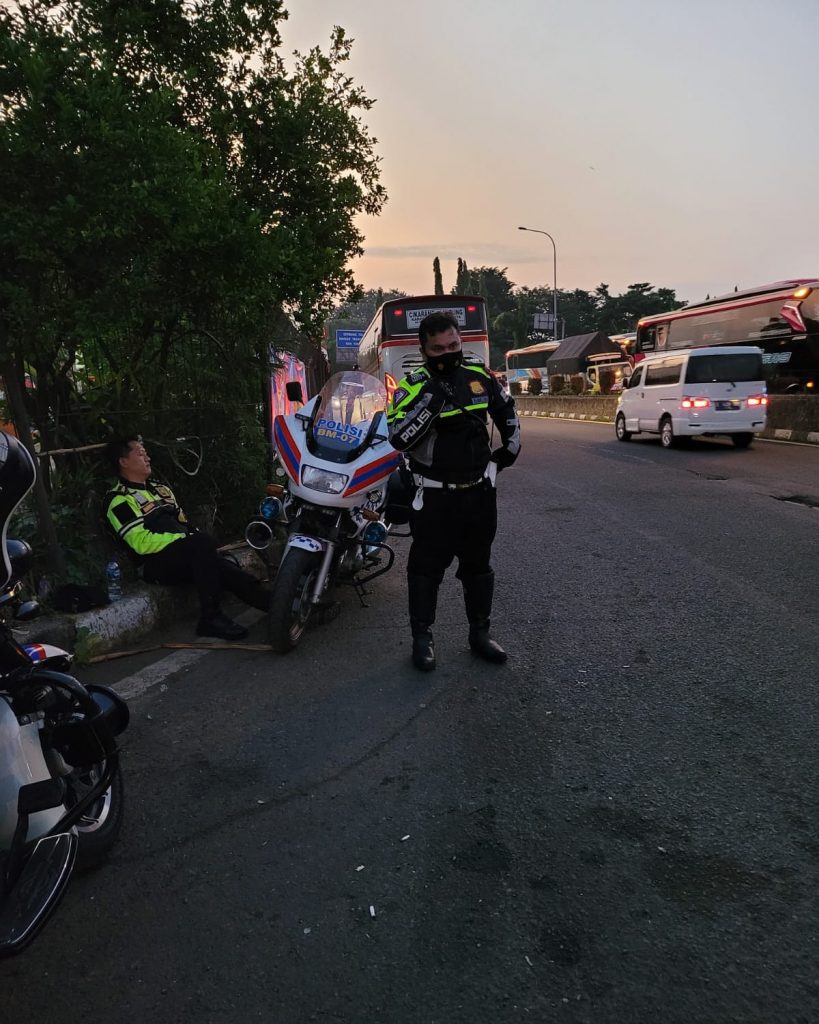 PURWAKARTA – Pemandangan menarik di sela kemacetan yang terjadi di ruas jalan protokol di Kabupaten Purwakarta, dalam momen arus balik lebaran 2022.