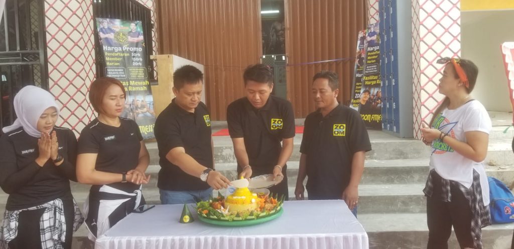 “Awalnya soft launching dulu, berhubung teman-teman sangat antusias dan banyak mendatangkan karangan bunga, ya udah sekalian saja Grand Launching. Karenanya dadakan, jadi tidak formil, ” terang Azum pengelola Zoom Fitnes.