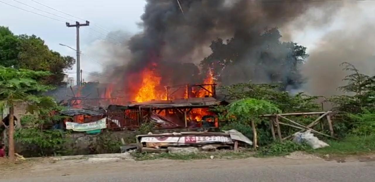 Karawang – Api membakar dua rumah di Kampung Kepuh Al-Jariyah, RT/RW 03/15, Kelurahan Karawangpawitan, Kecamatan Karawang Barat, Karawang, Minggu (22/5/2022).