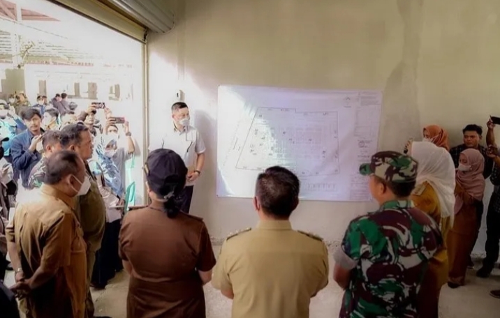 Karawang – Bupati bersama Forkopimda Kabupaten Karawang meninjau progres pembangunan Pasar Proklamasi Rengasdengklok, Senin (30/5/2022).