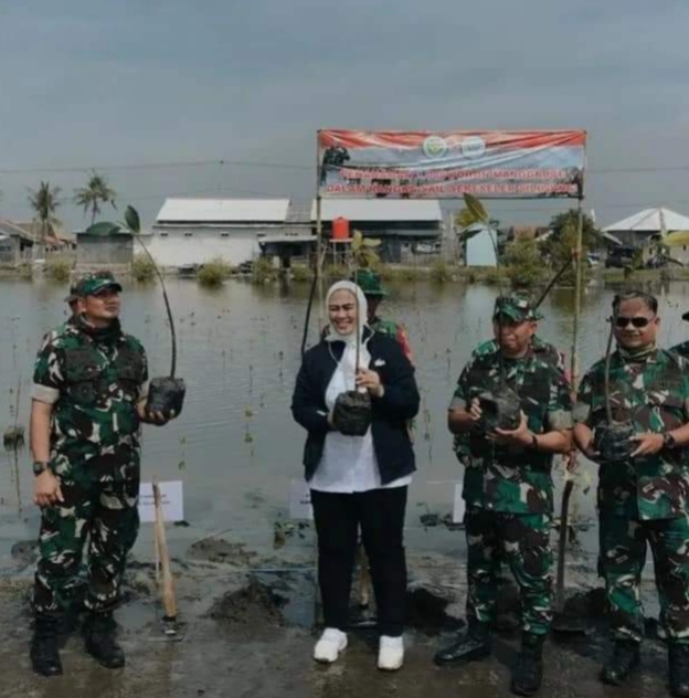 “Kami bergerak menanam 1.200 bibit pohon Mangrove yang 900 diantaranya sudah ditanam dan 300 lainnya ditanam langsung oleh bapak Pangdam dan Jajaran. Dengan harapan mangrove ini bisa menahan laju abrasi di sepanjang pantai Pedes,” kata dia.