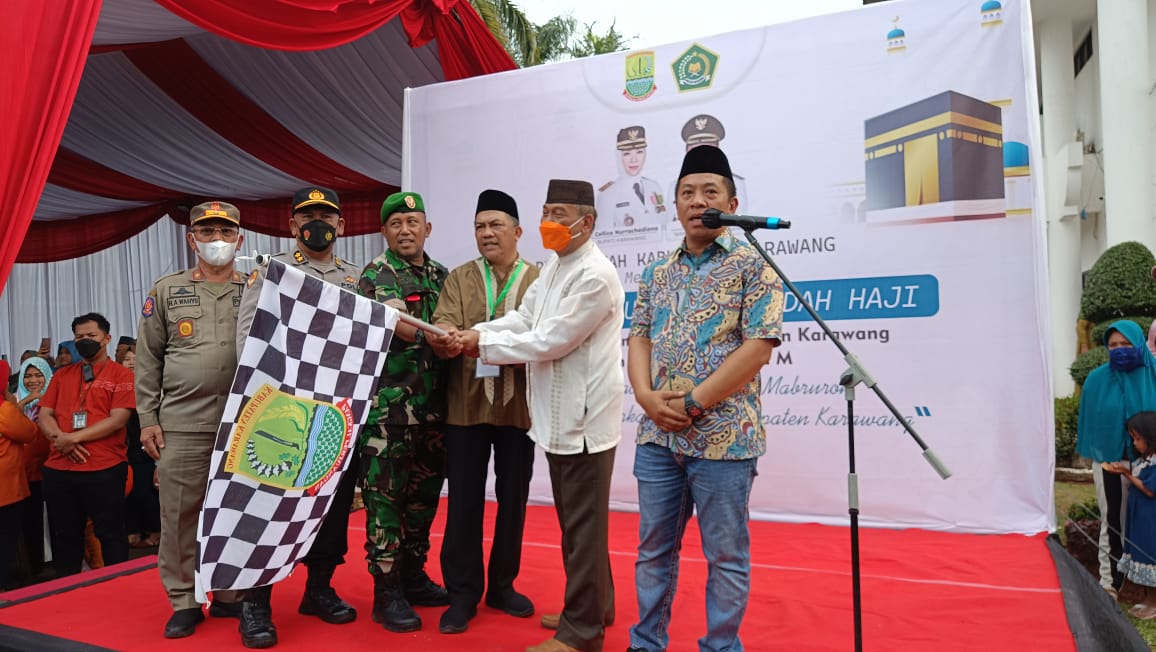 Karawang – Wakil Bupati Karawang, H.Aep Syaepulloh,SE melepas pemberangkatan 406 jamaah haji gelombang kedua asal Kabupaten Karawang. Minggu, (12/6/2022).