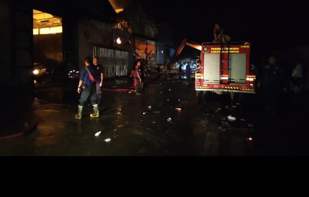 Kebakaran di Rengasdengklok ini melahap Gudang Pampers terbakar hebat. membuat warga sekitar dan karyawan panik.