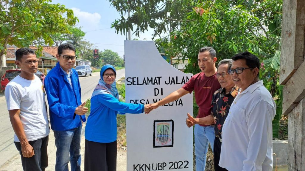 Mahasiswa UBP Karawang menyerahkan tugu pembatas desa