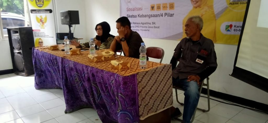 Karawang – Anggota DPRD Provinsi Jabar komisi V Dapil X dari Fraksi Partai Golkar Sri Rahayu Agustina melaksanakan sosialisasi kebangsaan 4 Pilar (Pancasila,UUD 45, NKRI dan Bhineka Tunggal Ika) di Kantor Kelurahan Karawang Pawitan, Sabtu (04/09/2022).