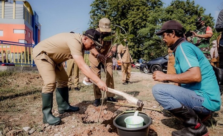 Karawang – Sebanyak 389 orang yang tergabung dari petugas kebersihan Dinas LHK, Petugas Damkar, Satpol PP, serta volunteer dari LSM melakukan gerakan bersi-bersih (Geber) dan melak tangkal (Metal) atau menanam pohon, dalam rangka perayaan HUT ke-389 Kabupaten Karawang.