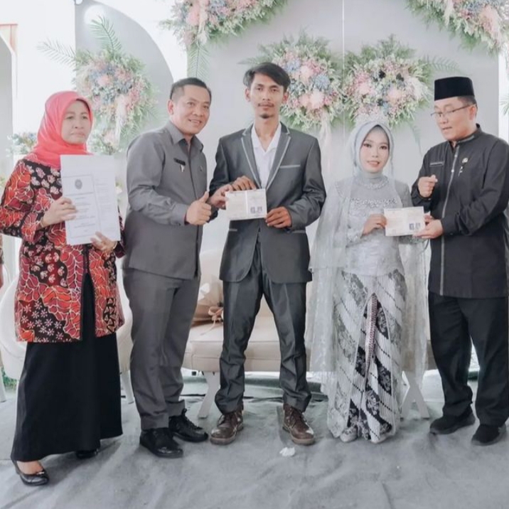 Hadir Bupati Karawang dr Hj Cellica Nurracahadiana bersama Wakil Bupati Karawang H Aep Syaepuloh, serta Sekda Karawang Acep Jamhuri. Para pejabat utama Karawang itu menyaksikan langsung penyerahan dokumen pernikahan bagi puluhan pasangan ini.
