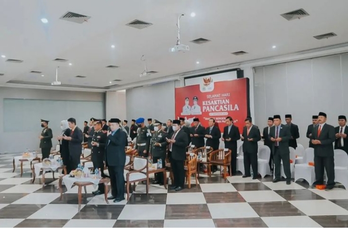 Karawang – Pemerintah Kabupaten (Pemkab) Karawang mengikuti Upacara Hari Kesaktian Pancasila Tahun 2022 digelar secara virtual di Aula Lantai 3 Gedung Singaperbangsa Karawang, Sabtu (1/10/2022) pagi.
